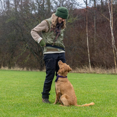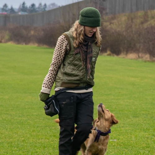Jeg er eksamineret hundeinstruktør i 2019 og ligeledes eksamineret adfærdsbehandler fra Irene Jarnved i februar 2025. – derudover har jeg en årelang baggrund som fysioterapeut.